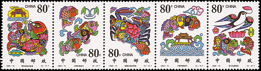 2000年第21届优秀特种邮票《小鲤鱼跳龙门》