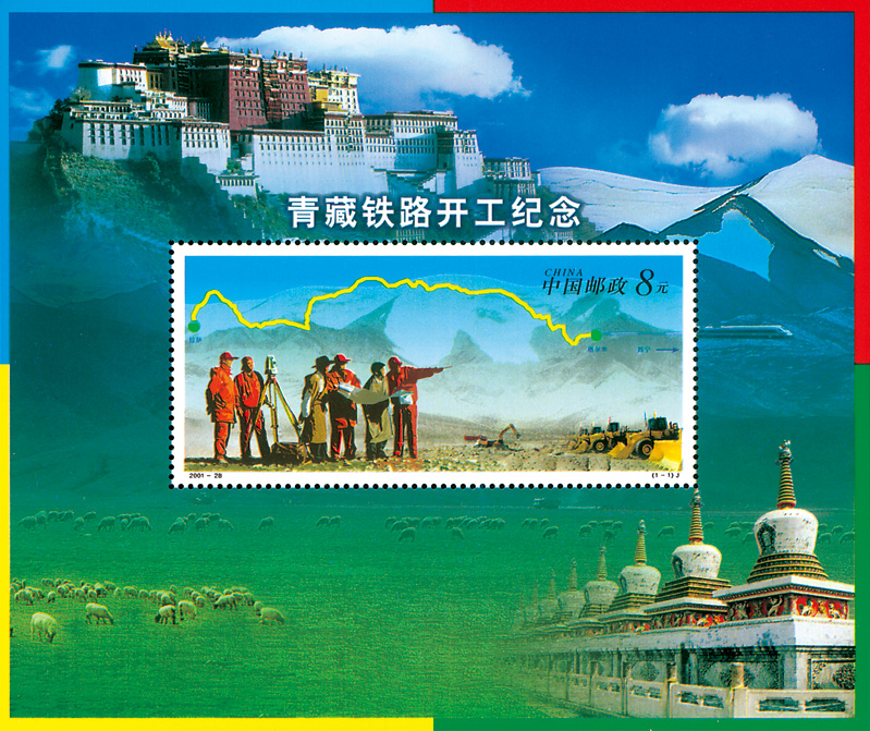 2001年第22届优秀纪念邮票《青藏铁路开工纪念》(小型张)