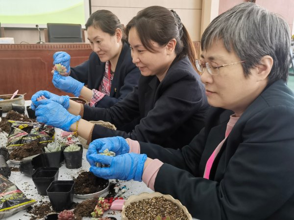 3月7日,在三八国际妇女节来临之际,通信局工会组织开展“多”彩女神节、“柔”美庆三八,“多肉微景观”DIY制作活动。