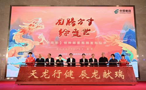 10月27日,《甲辰年》特种邮票图稿发布仪式举行。刘爱力董事长与国家邮政局副局长戴英军共同为邮票图稿揭幕,并同步启动邮票印制。