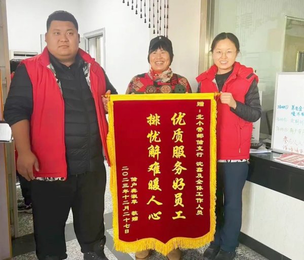 1月1日,用户龚女士来到中国邮政储蓄银行北京顺义区北小营营业所向全体员工送上一面写有“优质服务好员工 排忧解难暖人心”的锦旗,感谢北小营营业所帮她守住了“钱袋子”。