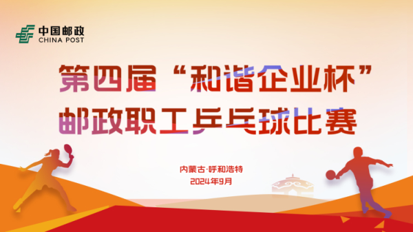 2024年9月11日至13日,由中国邮政集团公司、中国邮政集团工会主办的第四届“和谐企业杯”邮政职工乒乓球比赛在内蒙古呼和浩特市隆重开赛。为期3天的比赛里,来自全国邮政系统36支代表队激烈角逐。