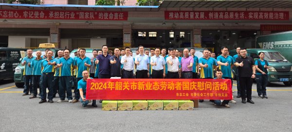 9月27日上午,韶关市分公司副总经理、工会主席陈红星携相关部门负责人,陪同韶关市总工会、市委社会工作部及创文办慰问组一行人,专程前往韶关邮政城区浈江揽投部,开展了一场温馨的新业态劳动者国庆慰问活动。
