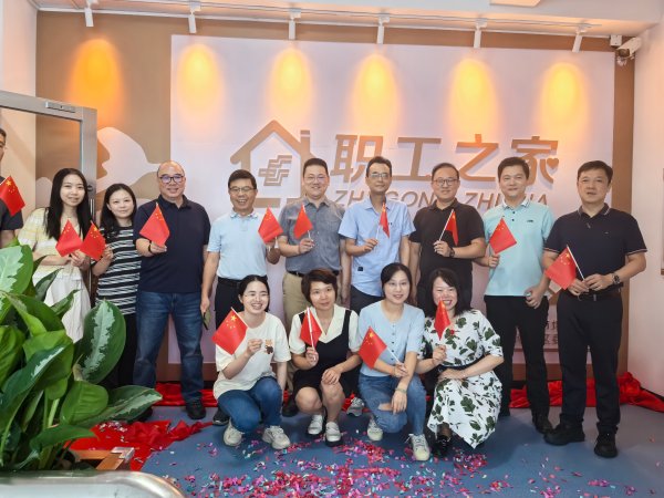 活动现场,五星红旗与职工之家内的红色装饰交相辉映,营造出浓厚的爱国情怀与节日氛围。深圳市分公司工会副主席曾广斌等领导嘉宾、坪山局领导班子与全体员工代表欢聚一堂,共同见证了这一具有历史意义的时刻。