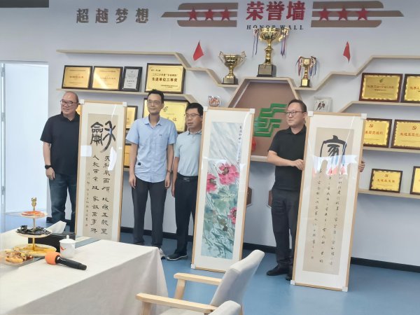 在参观过程中,深圳市分公司工会副主席曾广斌与坪山员工们亲切交流,他深情回顾了深圳邮政职工之家的建设历程,并强调:“家和万事兴,职工之家就是我们的家。我们要将家文化的理念深深植根于每位员工的心中,让这里成为大家共同的精神家园。”与此同时,曾副主席代表深圳市分公司工会向坪山职工之家赠送了《家》《荷花》《和》三幅书画作品,寓意着坪山职工之家开启温馨、和谐的发展之路。