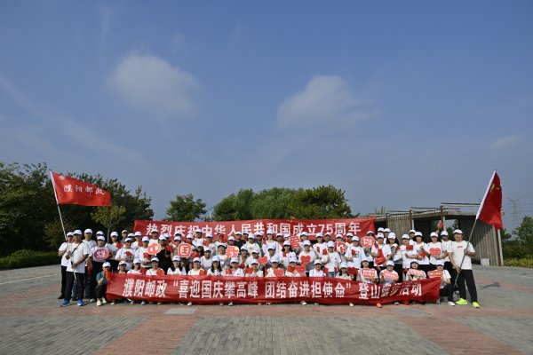 金秋送爽、丹桂飘香。为迎接祖国成立75周年华诞,9月29日,濮阳市邮政工会在龙山公园开展了“喜迎国庆攀高峰 团结奋进担使命”职工登山健步活动。此次活动不仅是一次简单的户外运动,更是对全体职工团结协作、积极向上精神风貌的集中展示。