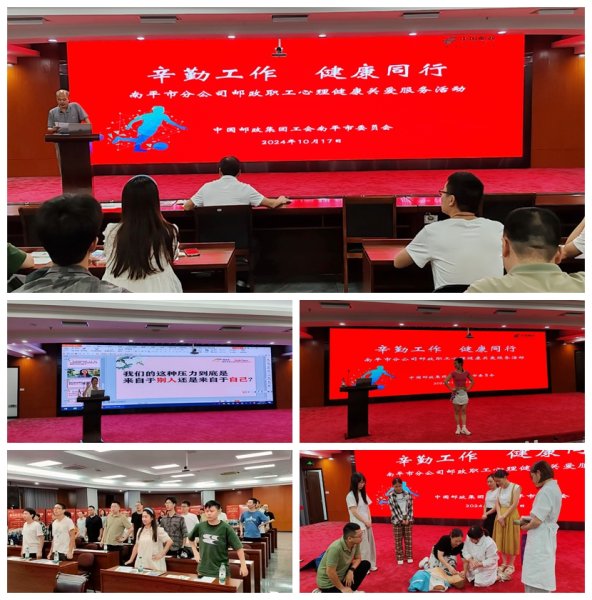 为落实2024年度为职工办实事项目,提高职工生活品质,促进职工身心健康全面发展,凝聚合力助推跨年度各项业务劳动竞赛取得新佳绩。10月17日,南平市邮政工会举办以“辛勤工作 健康同行”为主题的邮政职工心理健康关爱活动,来自机关、班组网点60余名职工踊跃报名参与。
