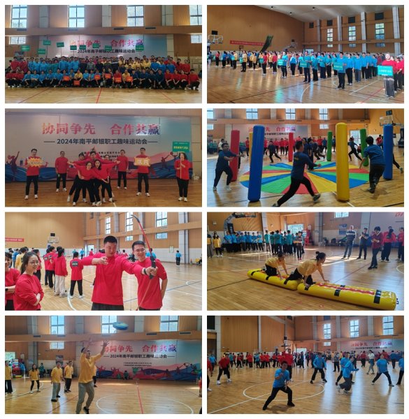 邮银携手共奋进,凝聚合力谋发展。10月30日,由南平市邮政工会和邮储银行分行工会联合举办以“协同争先 合作共赢”为主题的邮银职工趣味运动会,在南平市延平区金山体育馆隆重举行。来自全市110余名邮银职工踊跃参加,邮政和邮储银行领导班子成员、职工现场为运动员加油助威。