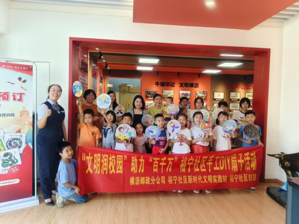 10月19日上午,东莞邮政横沥分公司工会携手裕宁社区新时代文明实践站及社区妇联,于横沥牛墟主题邮局开展了手工DIY扇子亲子活动。此次活动以社区为中心,围绕“文明润校园”、助力“百千万”主题策划,为市民朋友们搭建了一个学习与文化交流的平台。