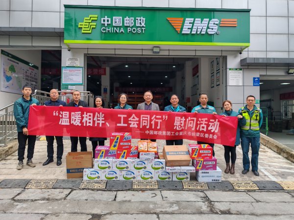 11月20日,铜梁邮政总经理蔡朝阳一行前往营业部开展“温暖相伴、工会同行”旺季慰问活动,看望慰问奋战一线的揽投人员,并为他们送上牛奶、面包、方便面、火腿肠等慰问品,让员工切实感受到企业的关怀和温暖。