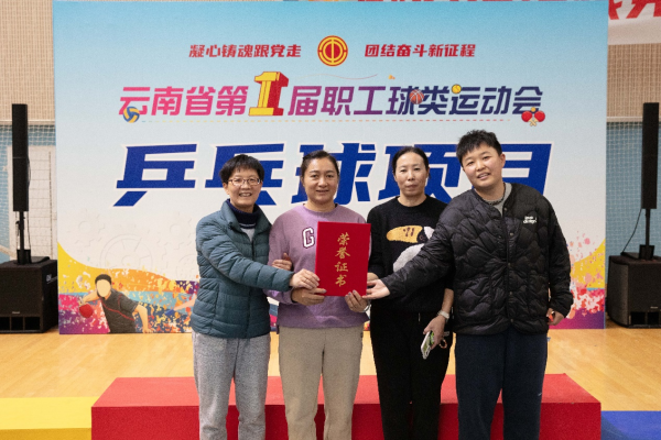 乒乓球女子团体参赛队员分别是省分公司的沈隽和崔瀛丹、楚雄分公司的赵小豫、普洱分公司的李晓英。在为期6天的比赛中,面对众多强劲对手,参赛队员们团结一心,凭借精湛的球技与坚韧的毅力,在比赛中突出重围,赢得了难能可贵的荣誉。