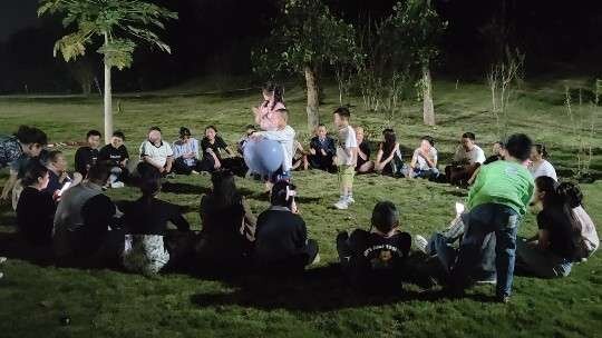 此次心理健康疏导活动把理论内容穿插在户外游戏中开展。在热身游戏“桃花朵朵开”中完成分组,以小组的方式进行“穿越呼啦圈”“轨道运输”“不倒森林”小组赛,以众人挥舞而成的“动力圈”完成团队任务。