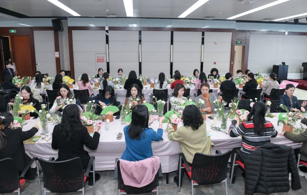 为庆祝第115个“三八”国际劳动妇女节,丰富女职工文化生活,营造温馨节日氛围,3月7日下午,江苏省分公司机关工会组织全体女职工开展了“花香满溢 情暖巾帼”主题插花活动。