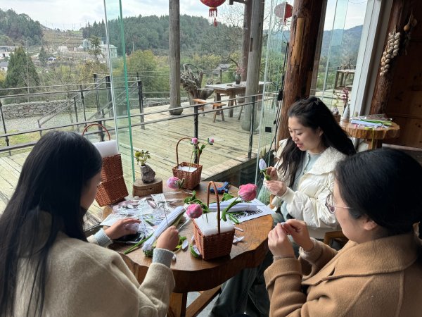 在活动现场,手工制作环节率先点燃了大家的热情,在老师的指导下,女职工们化身“创意达人”,用五彩斑斓的扭扭棒编制出栩栩如生的花朵、草莓;气球在指尖翻飞,化作一朵朵缤纷的“永生花”,既有童趣又充满艺术感。随后,踏着着春日的阳光,女职工们来到郊野公园开启“寻宝之旅”,大家手持工具,穿梭于绿意盎然的田间地头,辨认并采摘荠菜、鱼腥草、野葱等野菜,欢声笑语回荡在田野间。春风执起巧手的画笔,将女性的创意与自然的馈赠,晕染成三八妇女节里最灵动的画卷。