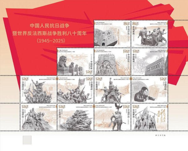 本报讯 根据党中央有关中国人民抗日战争暨世界反法西斯战争胜利80周年纪念活动安排,中国邮政于9月3日发行《中国人民抗日战争暨世界反法西斯战争胜利八十周年》纪念邮票1套13枚、小型张1枚,全套面值为20.8元。