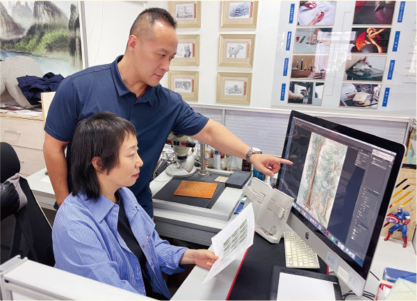 杨志英:让古树成为跨越时空的文化信使 在最初报选题的时候我就对这套邮票很感兴趣,因为树木题材非常适合雕刻版邮票,我就确定了以雕刻版为主的表现形式来设计这套邮票。当时交了两个方案,一个方案是以树木的单雕线条方案配合厚重雅致的底色,纯雕刻线条加古色的底色;一个方案是以淡彩衬托加雕刻线的形式展示。经过邮票专家评审委员会的评审,专家们最终选择了两个方案,其中一个方案就是淡彩的方案,另一个方案是由徐喆老师创作的。最终根据专家们的意见结合集团公司的多方考虑,认为应该将两个方案的优势互相结合。于是,之后我和徐喆老师的创作方案结合,一起设计和完善,各取所长,完成了这套邮票。 这套以古树名木为主题的邮票设计中,结合水墨韵味与雕刻线条的双重艺术语言。形成虚实对比,强化立体感。方寸之间,银杏的灿烂、翠云廊的苍郁、国槐的沧桑、鹅耳枥的坚韧各具神韵。每一株古树都被赋予独特的气质。背景中若隐若现的地理标识,更为这些活化石增添了历史纵深感。暗示古树的历史语境。这套设计既满足了邮票的方寸之美,又通过中国传统艺术语言的当代表现,让古树成为跨越时空的文化信使。 每一套邮票背后都有很多故事,看似简单的呈现,其实背后真的都付出了很多。邮票的呈现就是一个接力的过程,就从我们设计雕刻的角度说,回头看过程稿就有很多版本,颜色的不同、线条走向的不同、构图的不同等等,经过我们自己的调整与完善后,还需要和专家们进行沟通,反复打磨。尤其是鹅耳枥这枚,画了很多遍,十遍肯定是有的,因为我没实地看过,资料很少,还不清晰,树还和其他树混合在一起,难度很大。每一幅既要保证艺术美感,又要符合植物学特征。在邮票图稿公布后,我们也很关注大家的评论,其中一条说四棵树形象都突破了票面边界,其实这是当时设计的一个小心思,面对这些千年古木——或历经沧桑岁月,或体量恢弘壮观,甚至是世间仅存的“地球独子”,我觉得小小邮票很难框住它们的矗立世间的岁月与沧桑,也很难框住它们的枝繁叶茂,所以都画出去了,既是对古树伟岸姿态的致敬,也为观者留下了想象的空间。 同事笑谈我与“古”字题材的缘分,从《中国古镇(四)》到《古树名木》,这些适合雕刻版表现的题材确实让我倍感珍惜。作为邮票雕刻师,能够用刻刀记录这些承载着中华文明印记的古老生命,既是专业优势的体现,更是难得的创作机遇。未来,我仍将继续探索雕刻版邮票的艺术表现力,用方寸之间的精雕细琢,传承更多动人的中国故事。