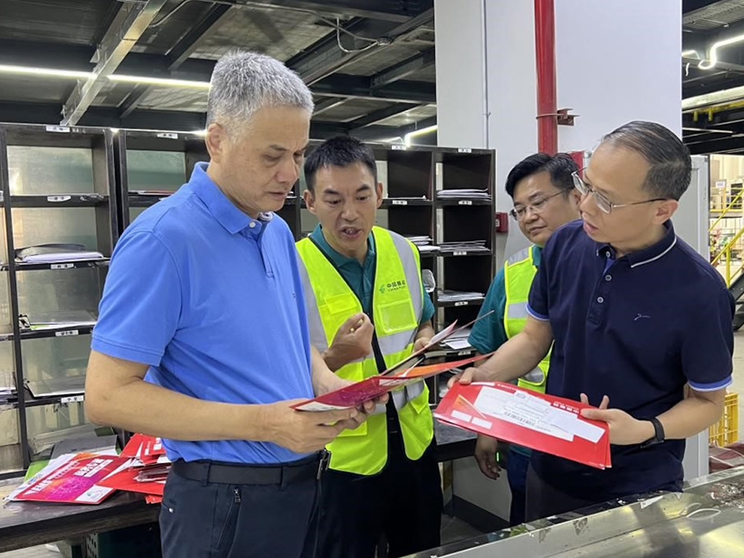 在进口邮件处理场地,刘锦南总经理一行深入生产作业核心区域,通过实地察看、现场交流,细致检查工艺设备运行稳定性与生产作业组织效率,认真听取邮区中心关于旺季生产调度、人员排班及后勤保障工作的专项汇报。针对邮件错发率压降、“十五运”相关邮件安全保障、邮件处理及时率提升等重点任务,刘总结合现场发现的问题展开深入调研,提出具体优化建议,明确工作标准与推进方向,为一线生产提供精准指导。